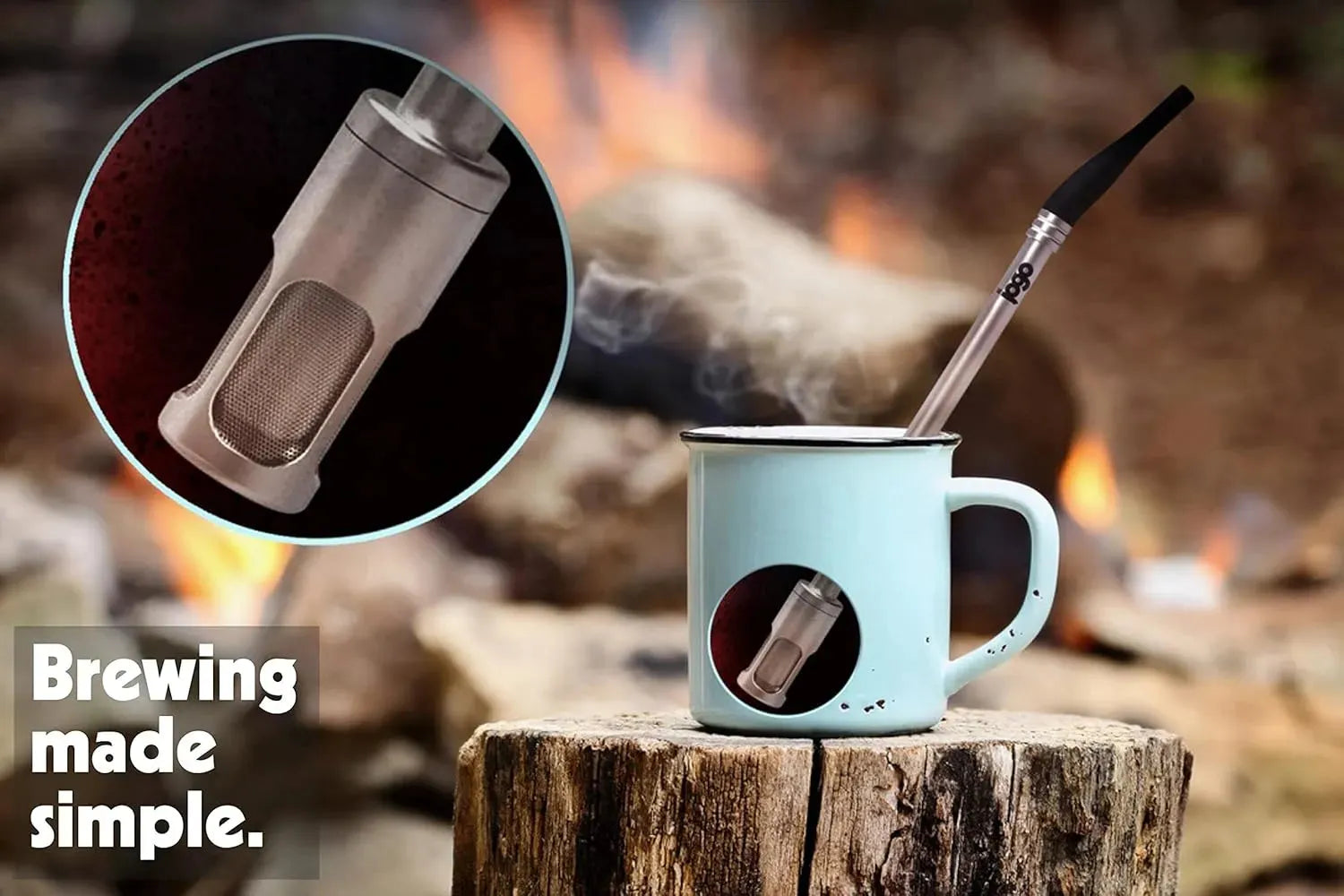 Meet Jogo - a stainless steel straw with a patent pending mesh filter at its base that lets you brew coffee and tea anywhere, & anytime.